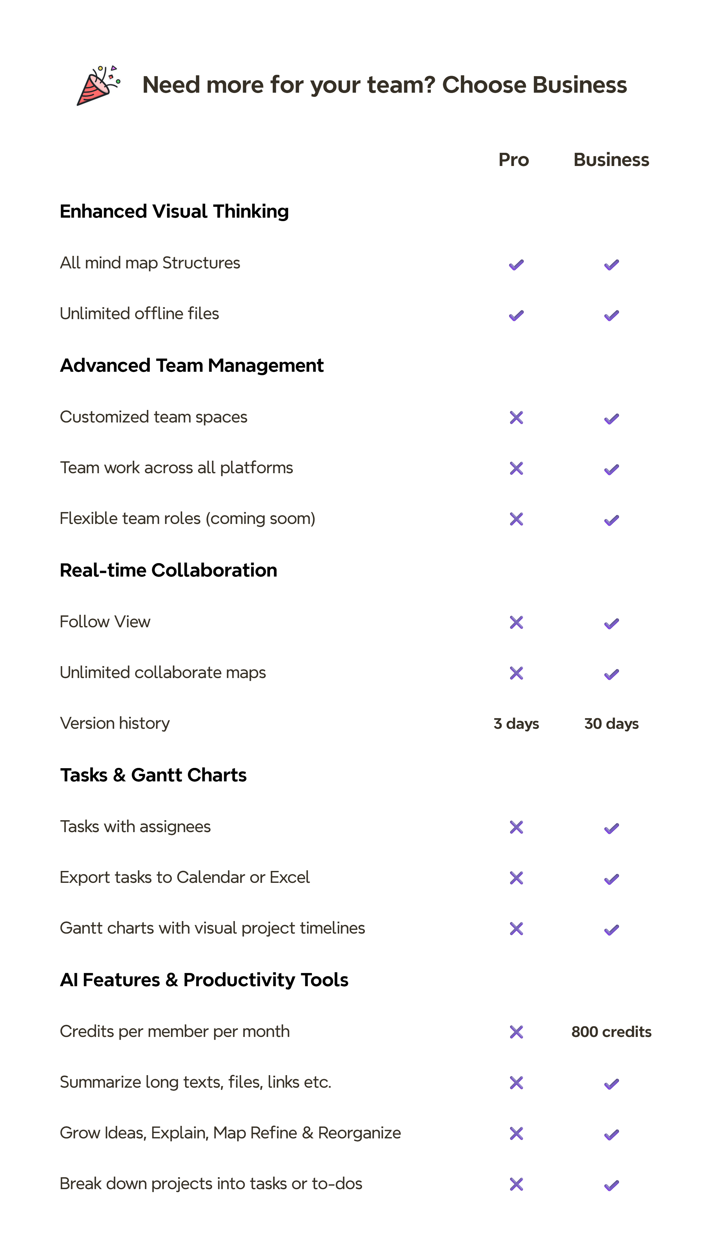 As a valued Pro subscriber, you can upgrade to Xmind Business Team Plan for USD 10/seat now. Get real-time co-editing, follow-view, and 30-day version history—without waiting for your current term to end.
